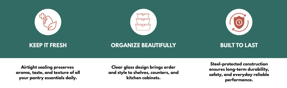 Designed for everyday convenience, easy refilling, and effortless cleaning, this kitchen storage jar set is both functional and visually appealing.